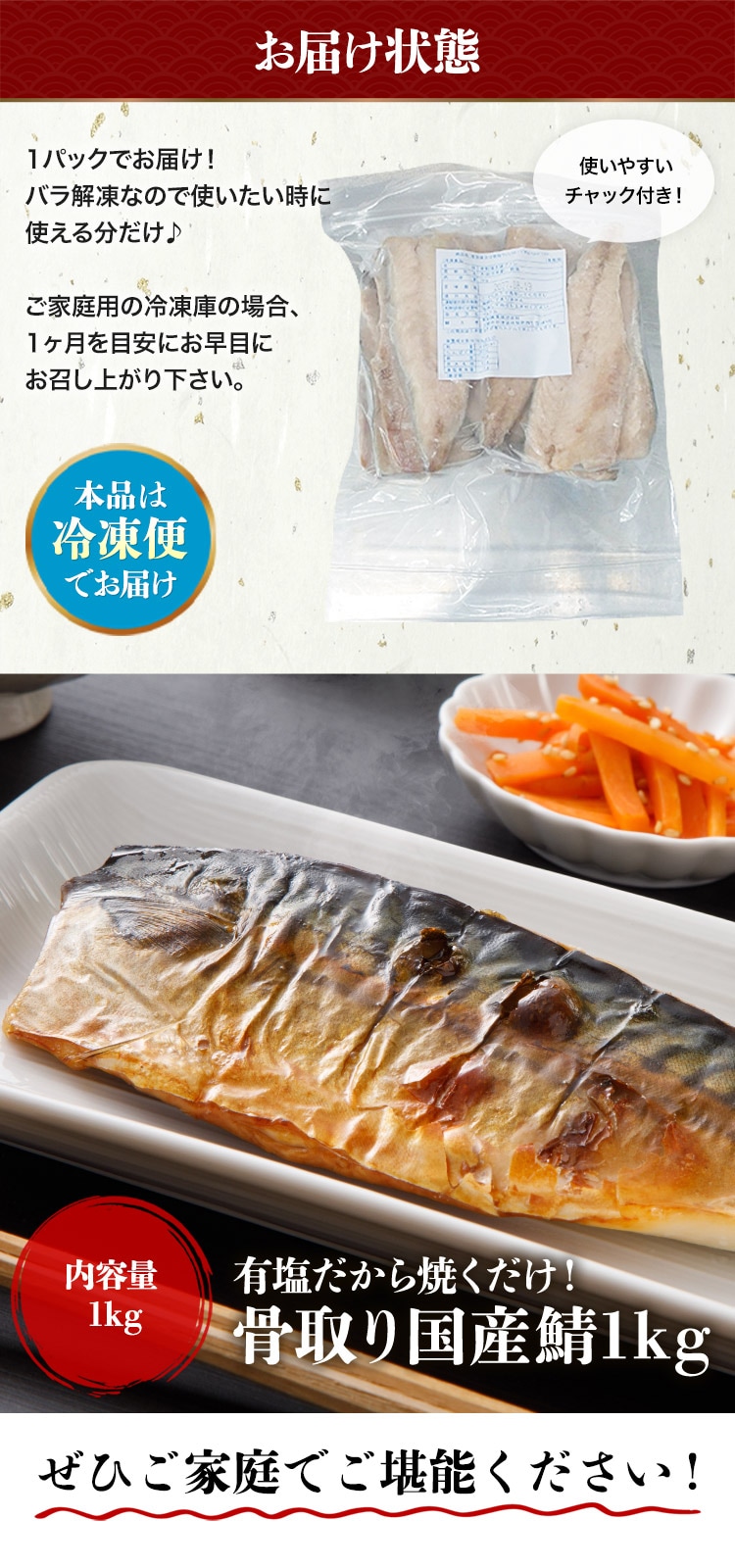 \10日限定★ポイント最大22倍/塩サバ さば 骨取り 国産 有塩 1kg 骨なし サバ 鯖 フィレ 日本産 冷凍 【最安値挑戦!3780円→1200円OFF★2580円セール】<年末指定可>