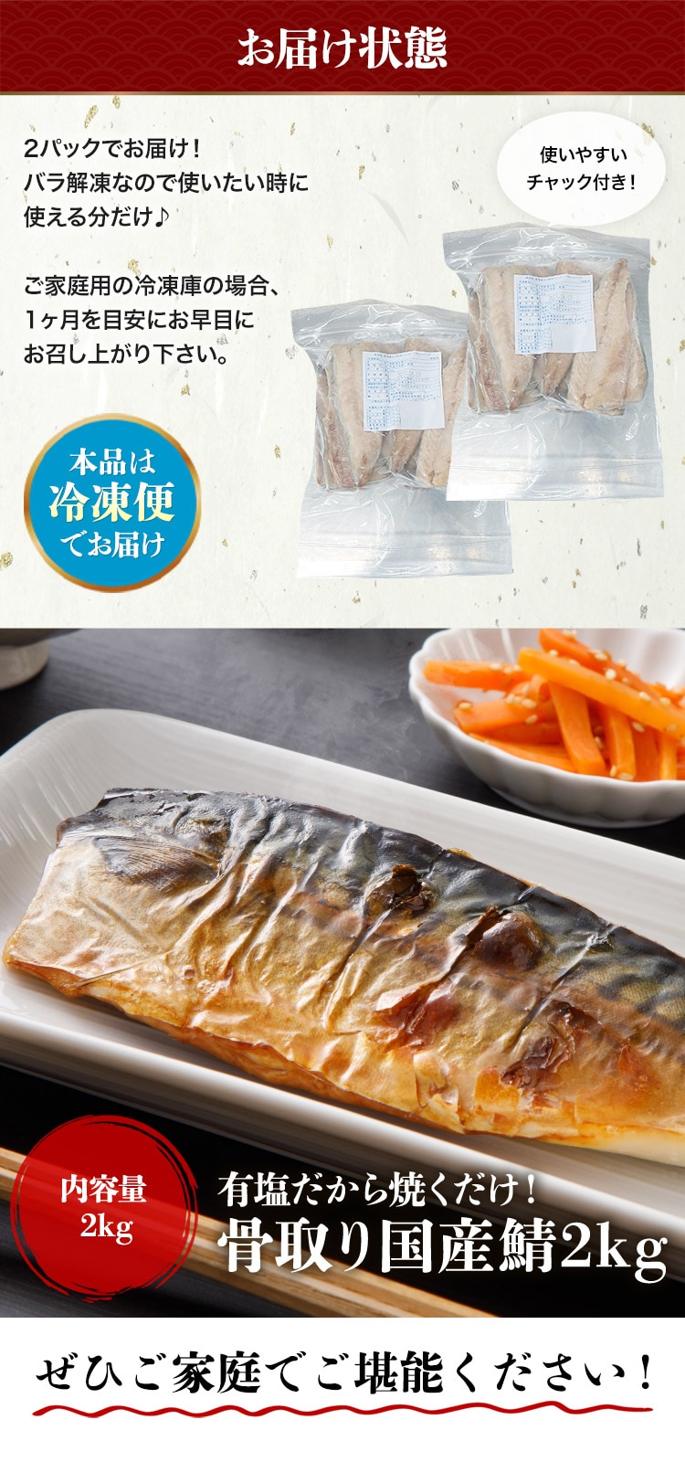 \10日限定★ポイント最大17倍/さば 骨取り 国産 有塩 2kg 骨なし サバ 鯖 フィレ 日本産 冷凍【最安値挑戦!7160円→3180円OFF★3980円セール】<年末指定可>