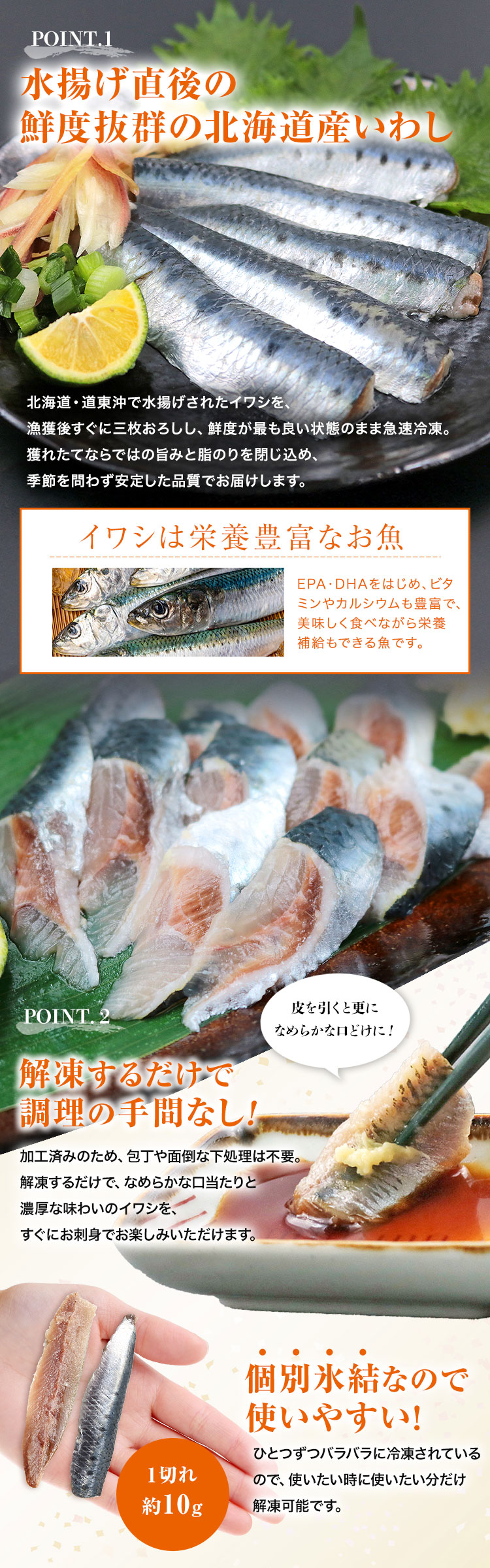 北海道・道東沖で水揚げされたイワシを、刺身用フィーレに仕上げました。