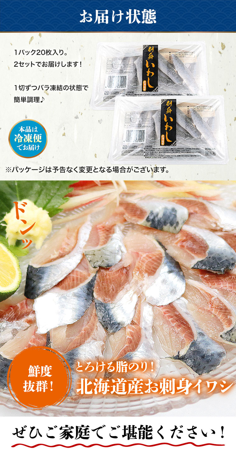 イワシ お刺身用 北海道産 20枚入×2 生食可 いわし 鰯 冷凍 脂のり 鮮度抜群 寿司 マイワシ まいわし