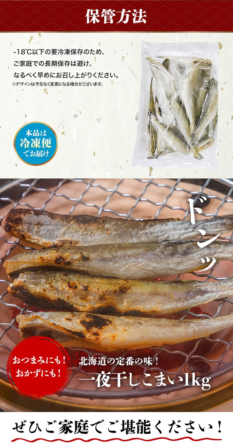 こまい 1kg 一夜干し 北海道産 氷下魚 コマイ 冷凍 魚 干物 炙り おつまみ 下処理済 個別氷結