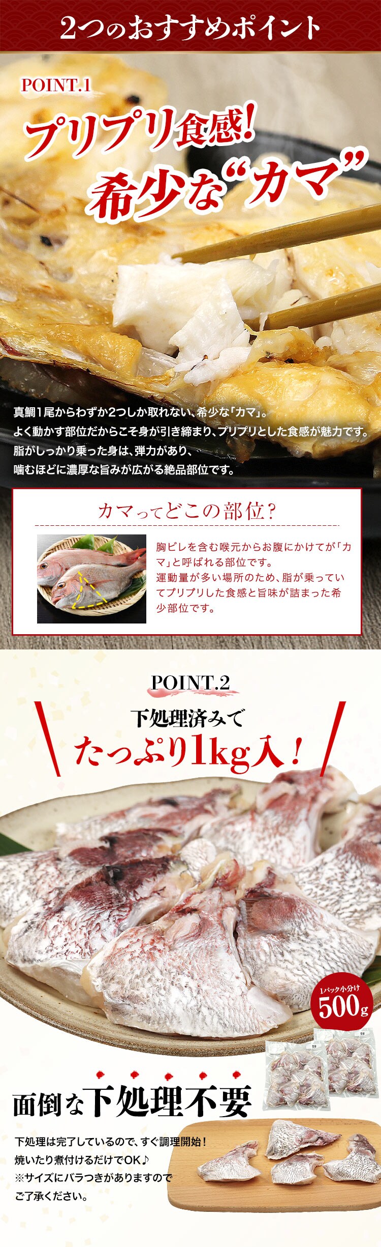 真鯛 カマ 1kg(500g×2) 愛媛県産 無塩 国産 たい 鯛 タイ 煮付け 塩焼き 下処理済 冷凍