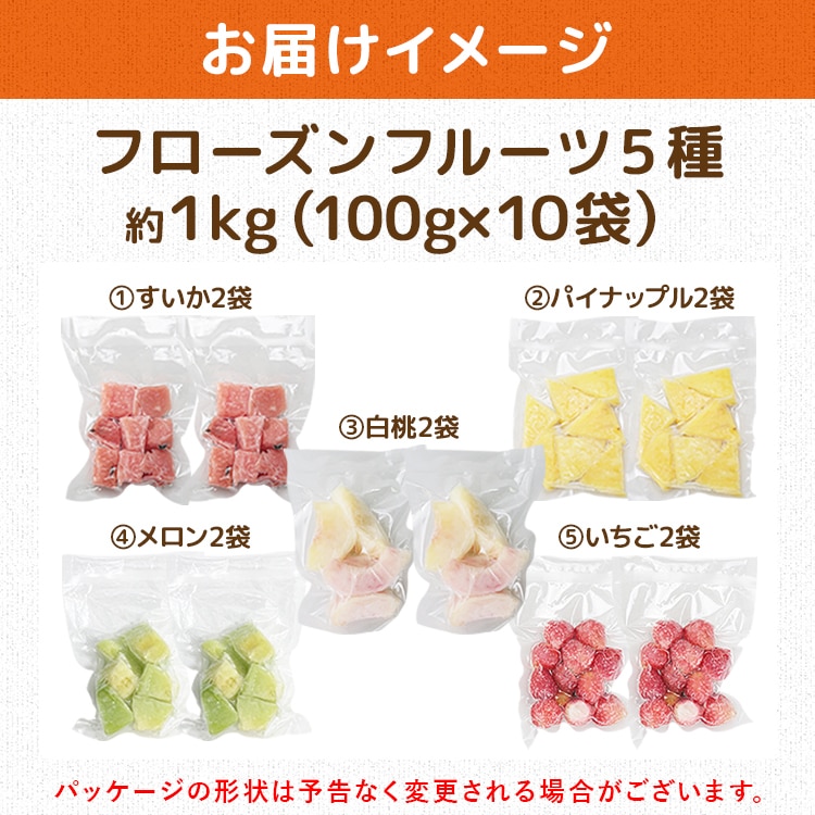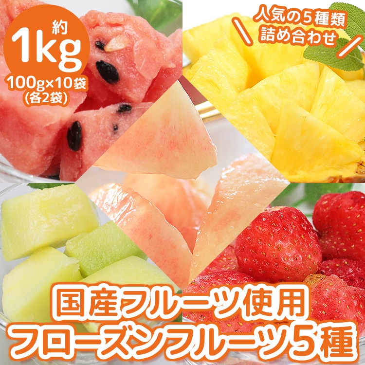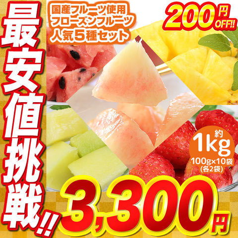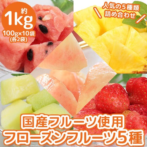 冷凍 フルーツ 1kg 国産 人気5種 100g×各2袋 白桃 パイナップル いちご すいか メロン 季節を彩る5種の贅沢フルーツセット【最安値に挑戦!3500円→200円OFF★3300円セール】 産直
