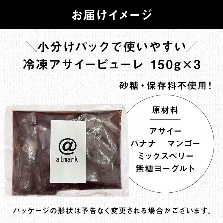 \10日限定★ポイント最大17倍/アサイーピューレ 450g (150gx3パック) 小分け 冷凍 砂糖・保存料不使用 アサイーボウル atmark アットマーク 冷凍便 産直
