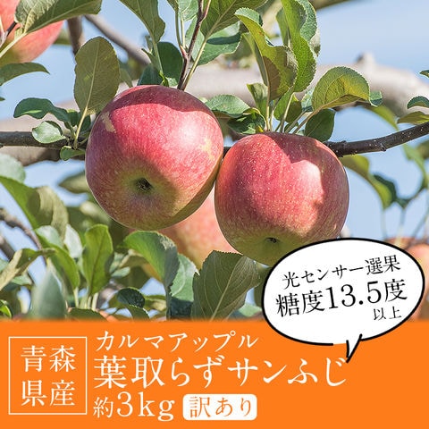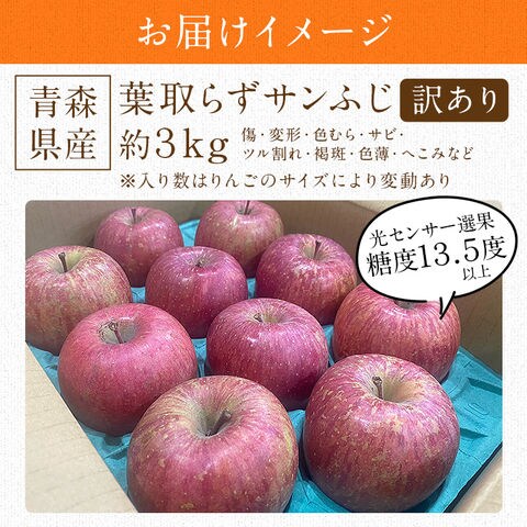 サンふじ 3kg 葉とらず りんご 家庭用 青森県産 園地指定 訳あり リンゴ 林檎 産直 指定日不可【予約受付中、12月上旬頃~出荷開始予定】