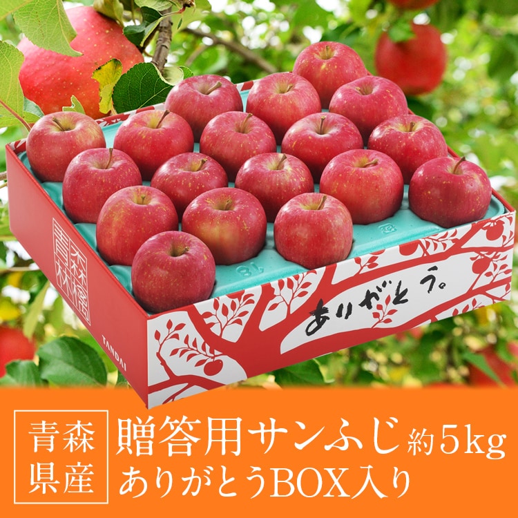\10日限定★ポイント最大17倍/青森県産 サンふじ 贈答用 5kg 16~18玉 ありがとうBOX入り 林檎 リンゴ ふじりんご フルーツ 果物 化粧箱 送料無料 お取り寄せグルメ 食品 ギフト お歳暮 産直【予約受付中、12月上旬頃~出荷開始予定】