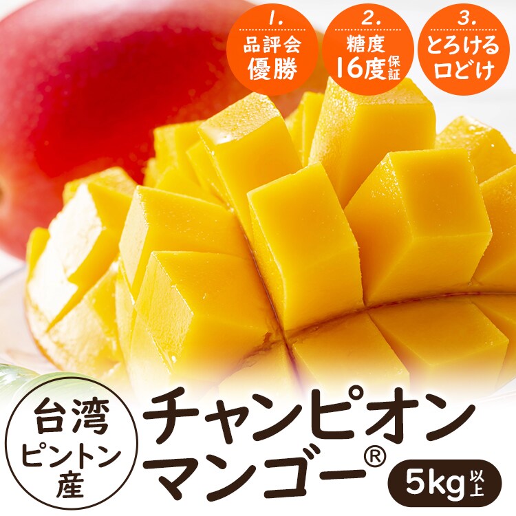 マンゴー 5kg以上 (8ー14玉程度) 台湾産 ピントン産 台湾から直送 チャンピオンマンゴー 糖度16度以上 産直 指定日不可【5月下旬~6月下旬頃・期間内発送予定】