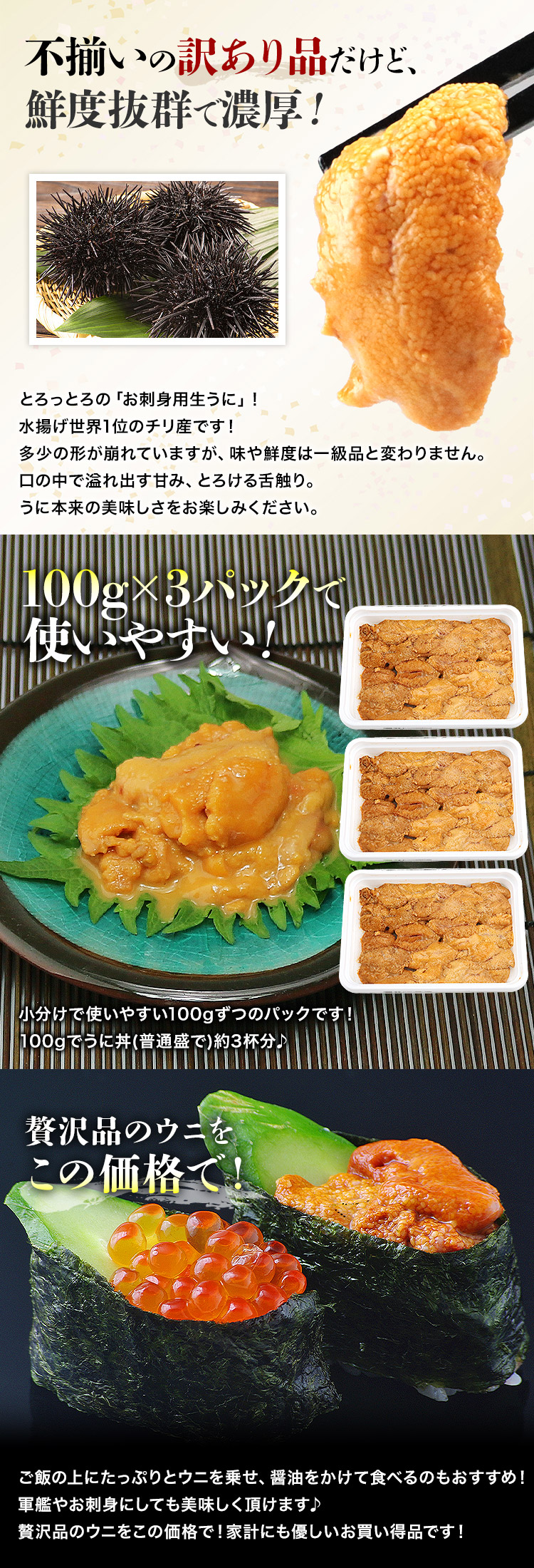 〇100gx3パック♪贅沢品のウニをこの価格で!