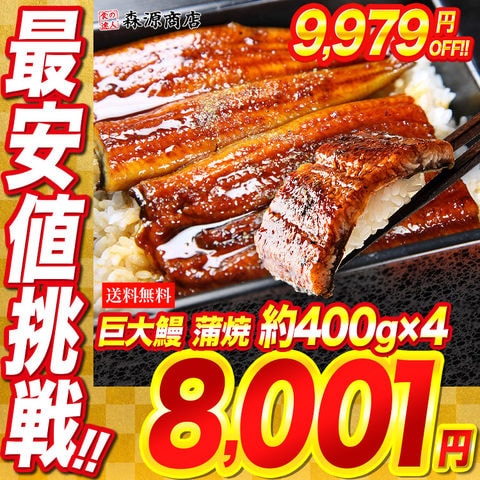 うなぎ 鰻 巨大 うなぎ蒲焼 400g前後×4本 送料無料 山椒 鰻たれ付 超特大 お取り寄せグルメ 食品 ギフト 海鮮 お祝い 土用丑【最安値に挑戦!17980円→9979円OFF★8001円セール】<年末指定可>