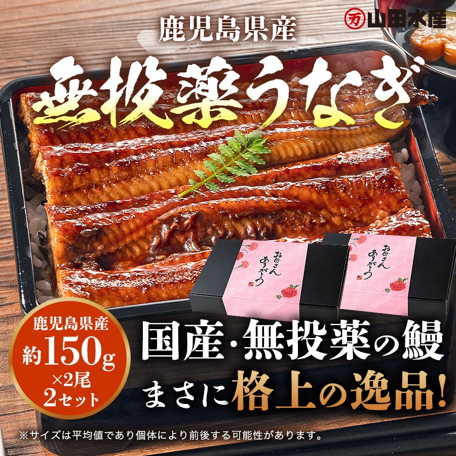 国産 うなぎ蒲焼き BOX 150g前後×2本 箱入り×2セット 母の日ギフト 送料無料 山椒鰻たれ付 鹿児島県産 お取り寄せグルメ 食品 海鮮 贈答 土用丑【最安挑戦!11880円→879円OFF★11001円セール】