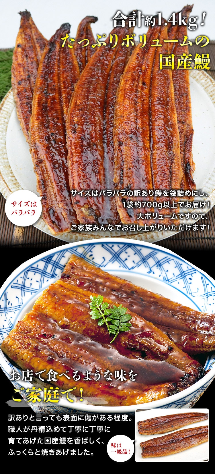 \訳あり 赤字大特価/ 【dショッピング限定】 国産うなぎ袋詰め 1.4kg(約700g×2)山椒鰻たれ付 訳あり 【※賞味期限が26年1月18日までの短い商品の為、指定日配送不可】 鰻 海鮮 土用丑【最安値挑戦!22260円→2619円OFF★20001円セール】