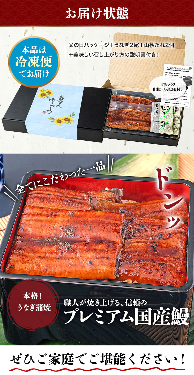 うなぎ 鹿児島県産 2尾BOX入 125g×2 父の日ギフト 化粧箱入 国産 蒲焼き 長焼き 無投薬 焼き上げ 無頭 2本【最安挑戦!5680円→500円OFF★5180円セール】