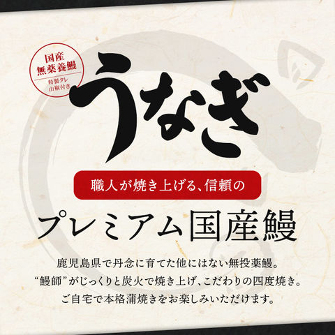 うなぎ(鹿児島県)、しょうゆ(大豆・小麦を含む)、砂糖、みりん、水あめ、発酵調味料