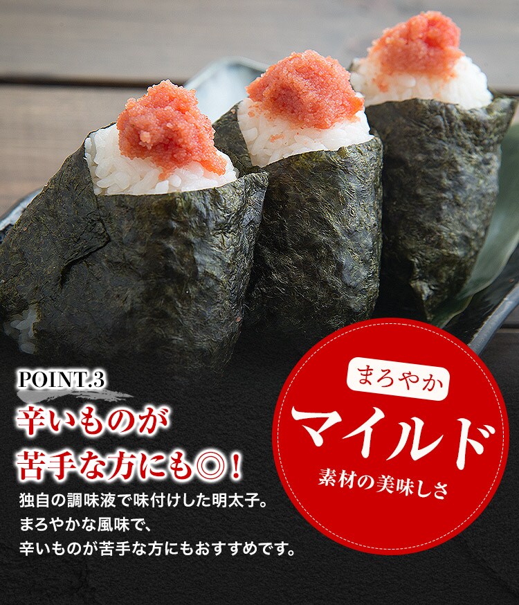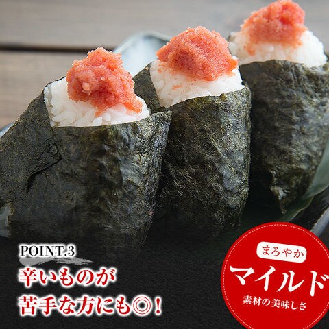 すけとうだらの卵巣(ロシア又は米国)、食塩、発酵調味料、果糖ブドウ糖液糖、魚介エキス、唐辛子、醤油(小麦・大豆を含む)/調味料(アミノ酸等)、酒精、甘味料(ソルビット)、酸化防止剤(V.C)、ナイアシン、pH調整剤、酵素、発色剤(亜硝酸Na)