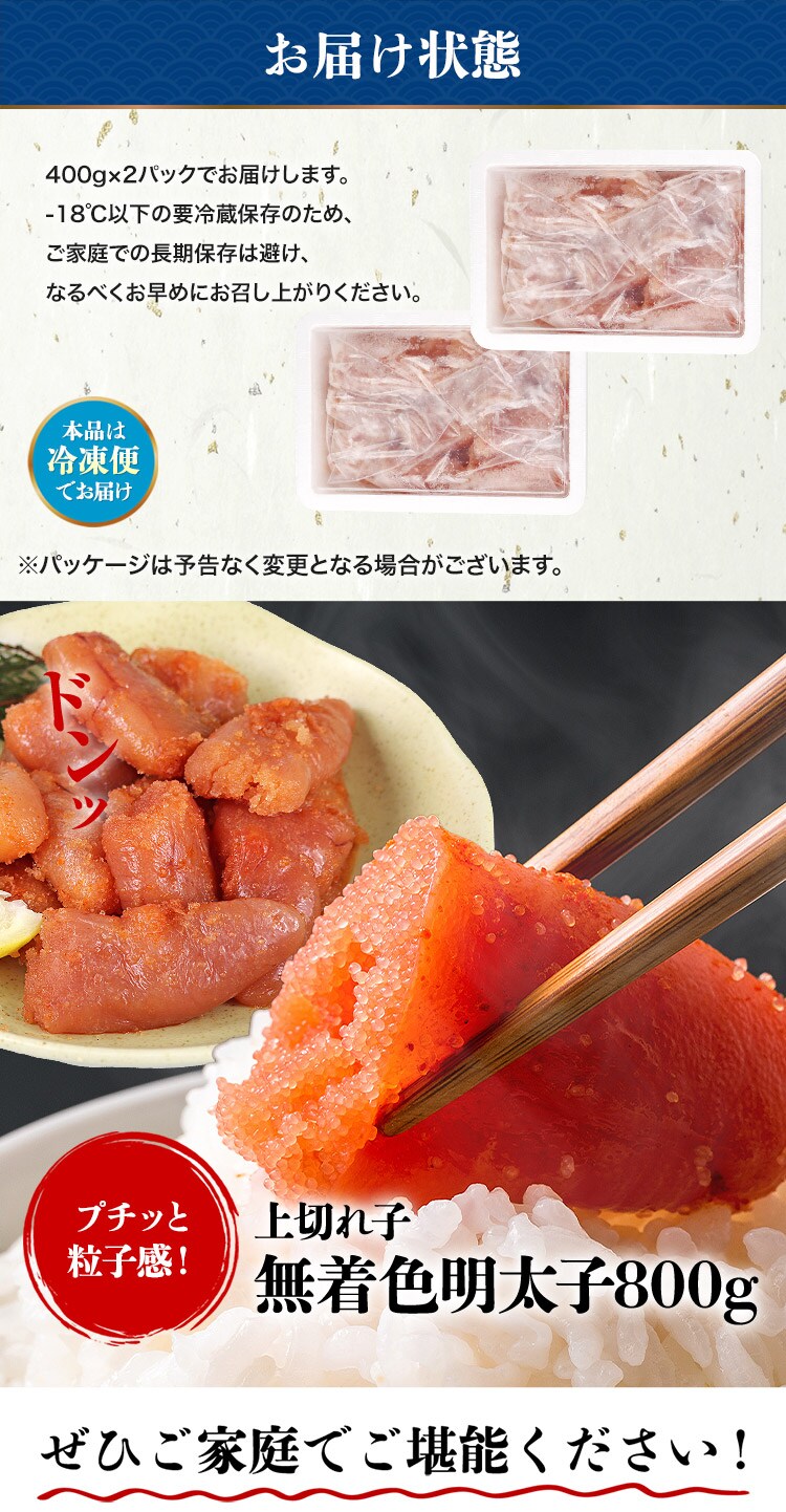 明太子 無着色 マイルド 上切れ子 800g(400g×2) めんたいこ メンタイコ ギフト お歳暮<年末指定可>