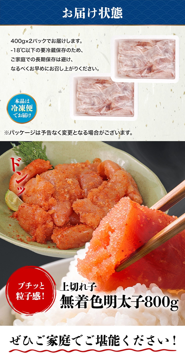 明太子 無着色 辛口 上切れ子 800g(400g×2) めんたいこ メンタイコ ギフト お歳暮<年末指定可>