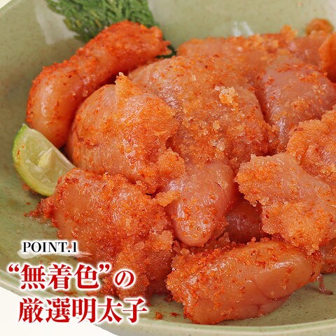 厳選された原料を使用した「無着色明太子」。