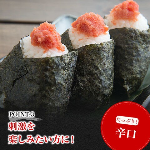 すけとうだらの卵巣(ロシア又は米国)、食塩、発酵調味料、果糖ブドウ糖液糖、魚介エキス、唐辛子、醤油(小麦・大豆を含む)/調味料(アミノ酸等)、酒精、甘味料(ソルビット)、酸化防止剤(V.C)、ナイアシン、pH調整剤、酵素、発色剤(亜硝酸Na)
