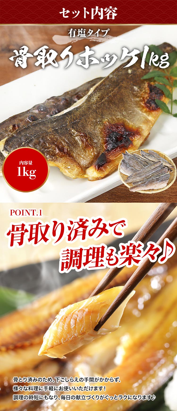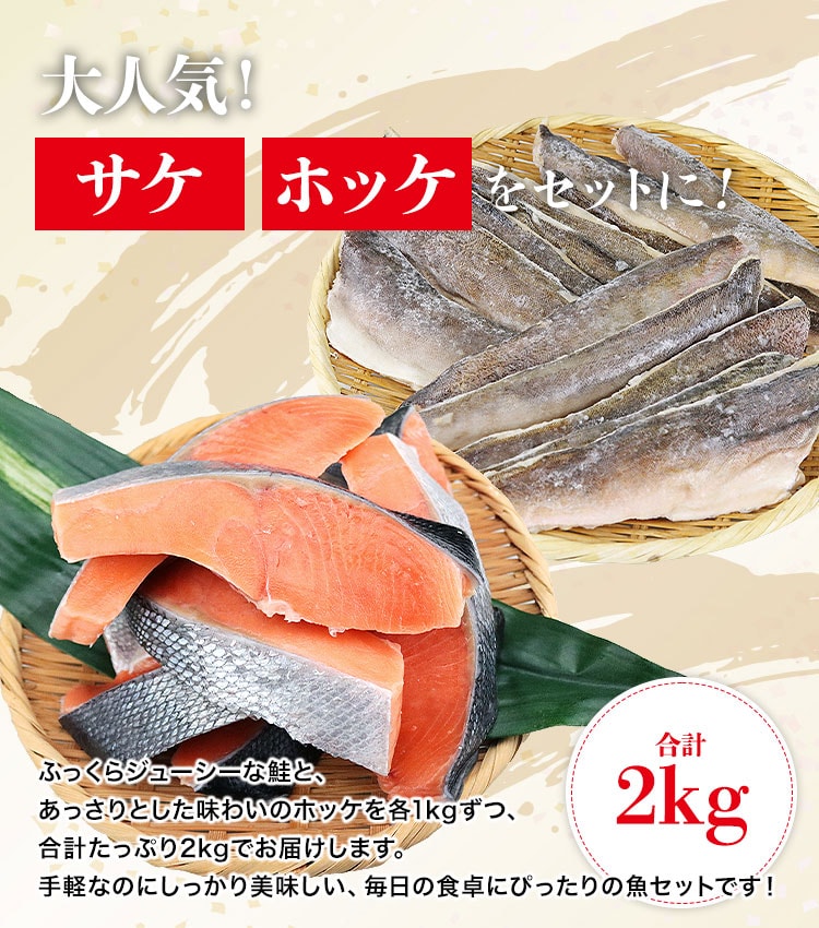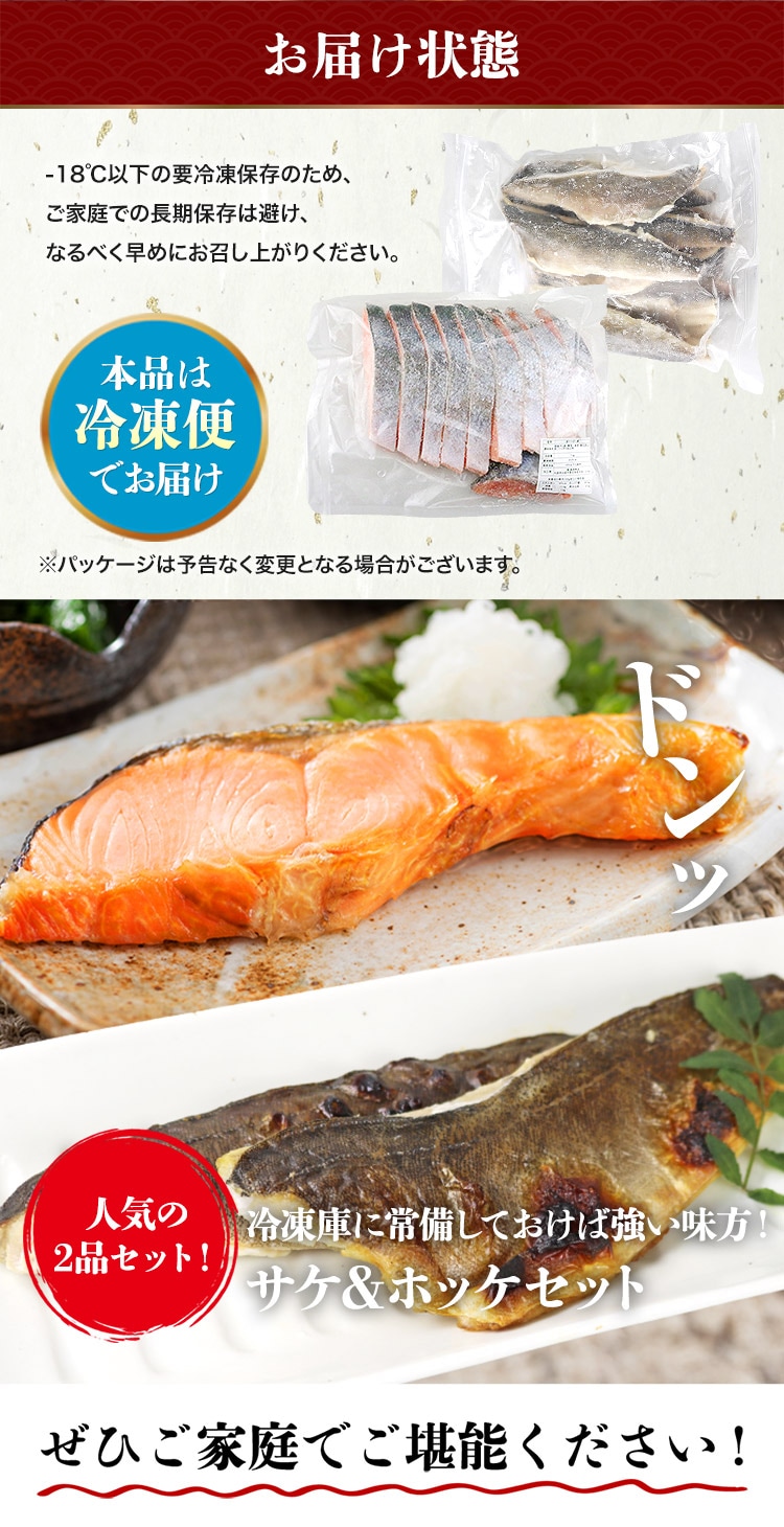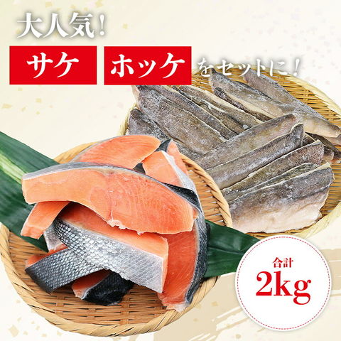 ホッケ と サケ 有塩セット 1kg×2 合計2kg ほっけ 切り身 鮭 さけ 骨取り 有塩 鮭 切り身 冷凍<年末指定可>