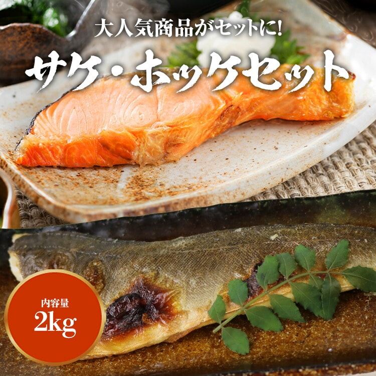 無塩 ホッケと サケ セット 1kg×2 合計2kg ほっけ 切り身 鮭 さけ 鮭 骨取り 無塩 鮭 切り身 冷凍<年末指定可>