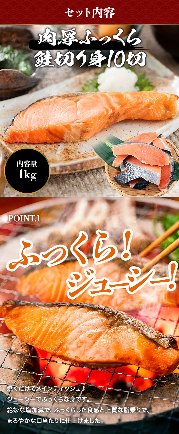 ふっくらジューシーな鮭と、