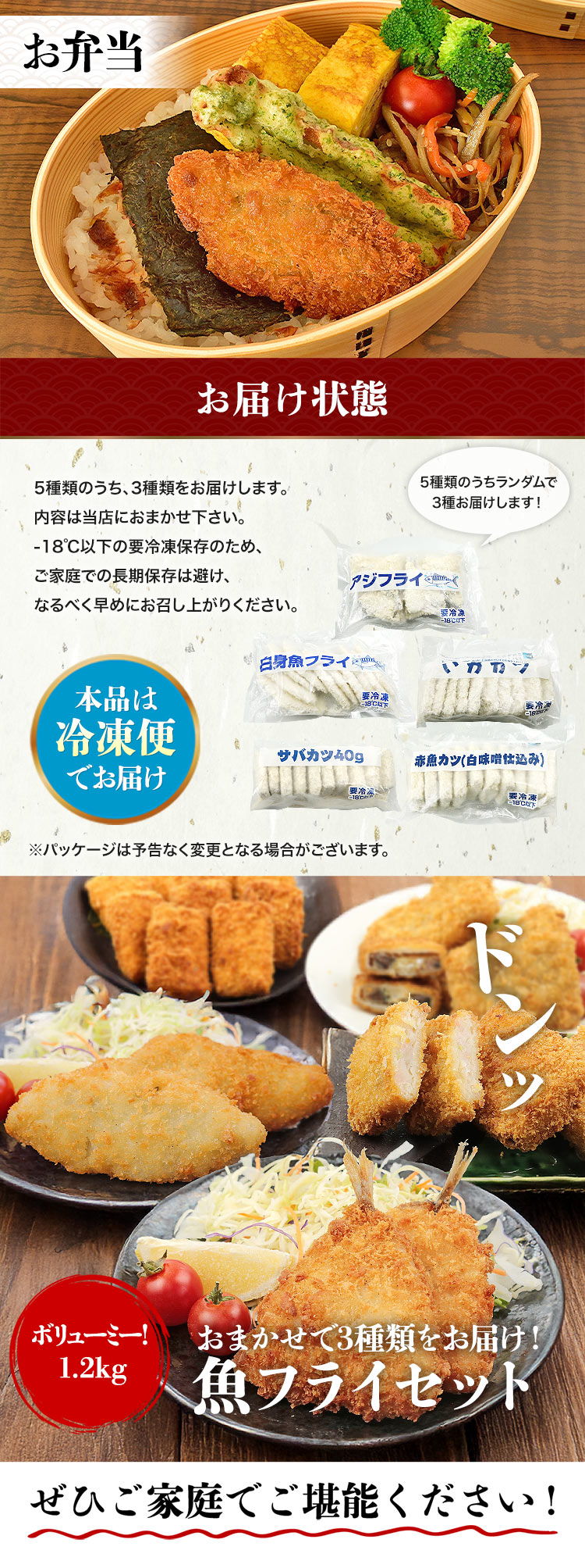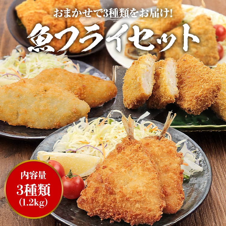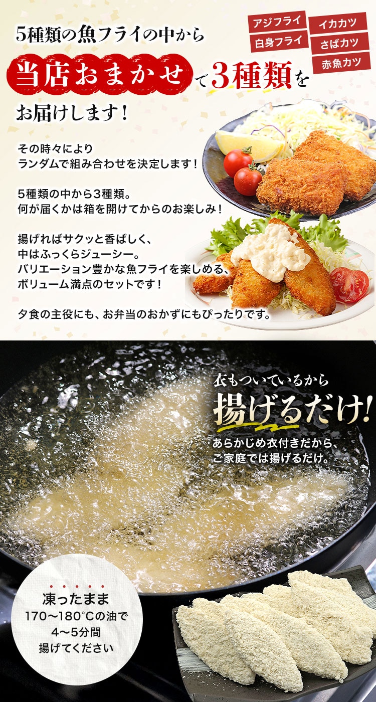 魚フライ3種セット 揚げるだけ 合計1.2kg(400g×3) おまかせ 惣菜 ランダム アジフライ 白身フライ さばカツ 赤魚 イカフライ 揚げ物 弁当