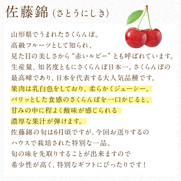〇旬の味を先取り!加温ハウス栽培の佐藤錦