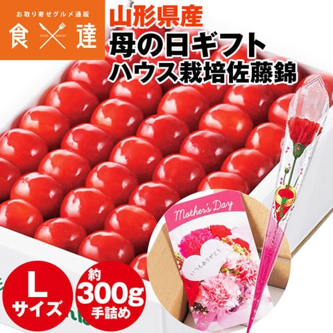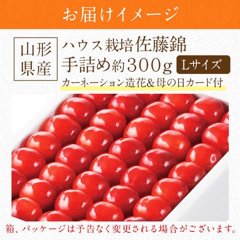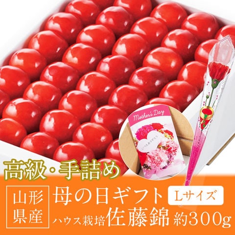 \4/10限定★ポイント最大14倍/\数量限定!無くなり次第終了/母の日 さくらんぼ 手詰め 300g Lサイズ 【5/4~5/9頃出荷予定】 カーネーション造花 カード 化粧箱 佐藤錦 山形県 産直