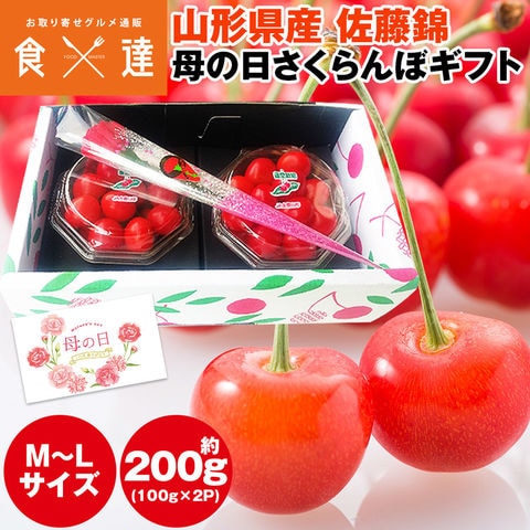 \4/10限定★ポイント最大14倍/母の日 さくらんぼ 200g カーネーション付 佐藤錦 M~Lサイズ 秀品 【5/6~5/9頃出荷予定】化粧箱 冷蔵便 産直