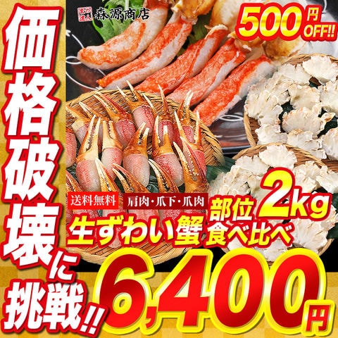 ズワイガニ 部位食べ比べ 爪肉 爪下 肩肉 総重量2kg NET1.6kg かに カニ ずわいがに ポーション カット カニ鍋【最安値挑戦!6900円→500円OFF★6400円セール】<年末指定可>