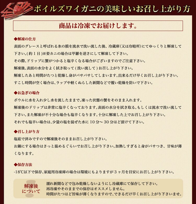 解凍後はお早めにお召し上がり下さいませ