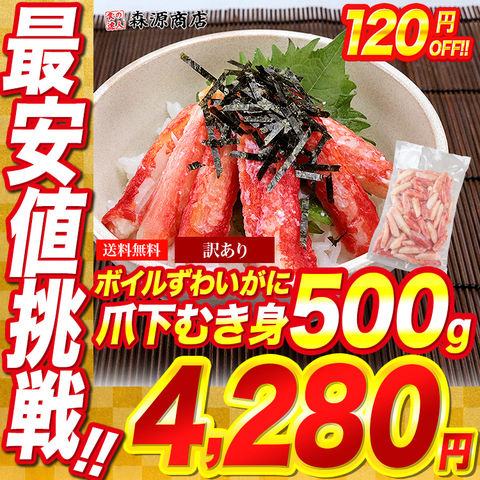 訳あり ボイルズワイガニ 爪下 むき身 500g かに カニ つめ下 蟹 剥き身 食べやすい 取り寄せグルメ 食品【最安値に挑戦!4400円→120円OFF★4280円セール】