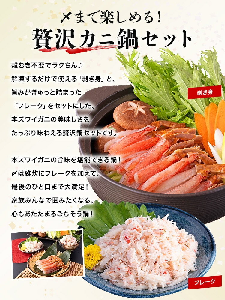 本ズワイガニの美味しさをたっぷり味わえる贅沢鍋セットです。