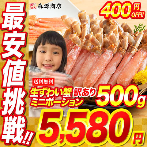 生 ズワイ蟹 ミニサイズポーション 500g かに カニ 蟹 訳あり 送料無料 ズワイガニ ずわいがに お取り寄せグルメ 食品 海鮮 衝撃価格【最安値挑戦!5980円→400円OFF★5580円セール】<年末指定可>