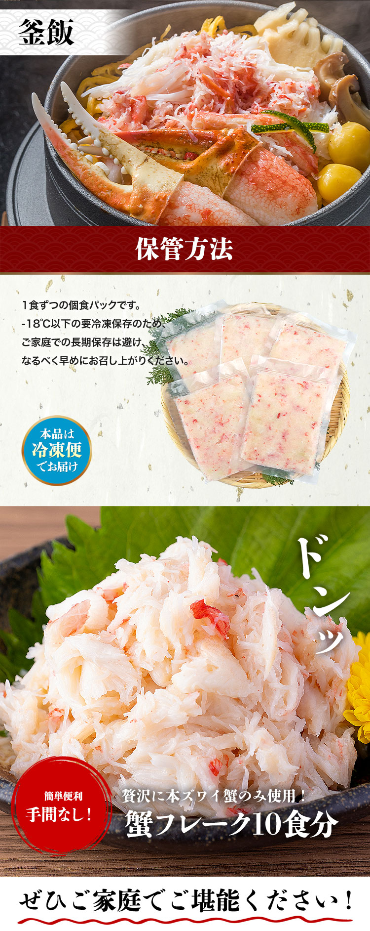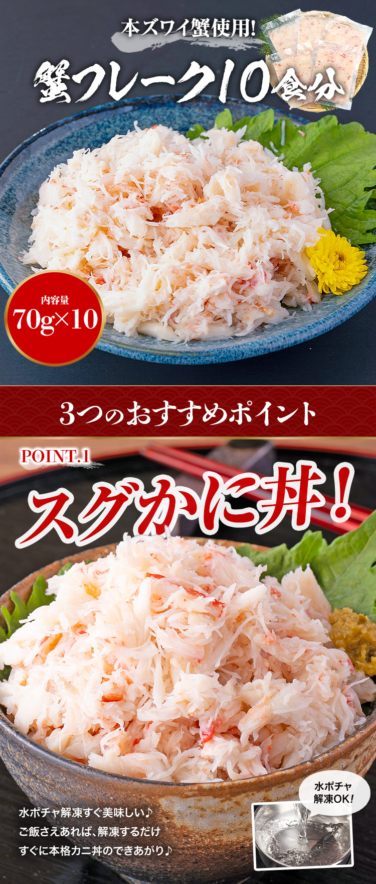 ズワイガニ カニ丼 10食 水ポチャ解凍 すぐ美味しい フレーク 蟹丼 10人前 かに 蟹 カニ お取り寄せグルメ 食品 ギフト お歳暮 海鮮 【最安値挑戦!7001円→1041円OFF★5960円セール】<年末指定可>