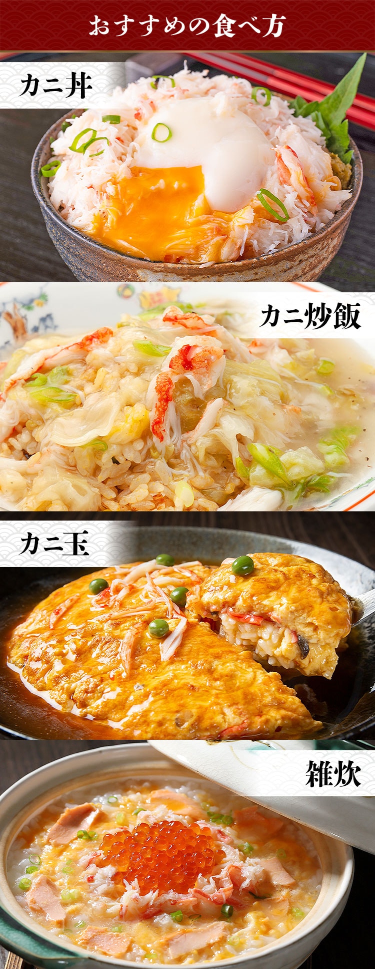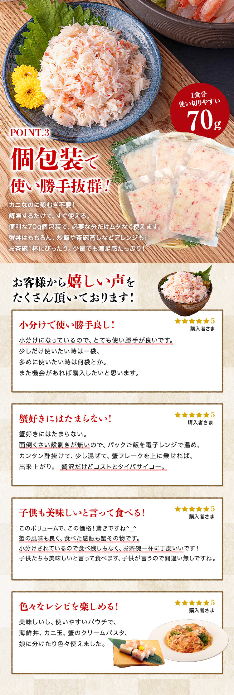 1食70gづつに個包装!カニ丼にちょうどいい量を追求しました!