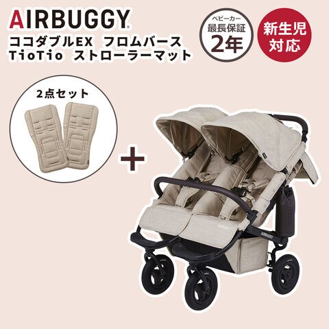 エアバギー ベビーカー ココダブルEX フロムバース アースサンド+TioTioマット ベージュ 2枚セット 正規品 2年保証 ふたご用ベビーカー双子 新生児 0ヵ月ハンドブレーキ 並列タイプ バギー AIRBUGGY 4輪 エアタイヤ【北海道・沖縄配送不可】 abg04set-c25012
