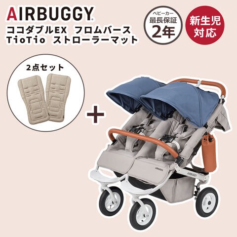 エアバギー ベビーカー ココダブルEX フロムバース リバーブルー+TioTioマット ベージュ 2枚セット 正規品 2年保証 ふたご用ベビーカー双子 新生児 0ヵ月ハンドブレーキ 並列タイプ バギー AIRBUGGY 4輪 エアタイヤ【北海道・沖縄配送不可】 abg04set-c25017