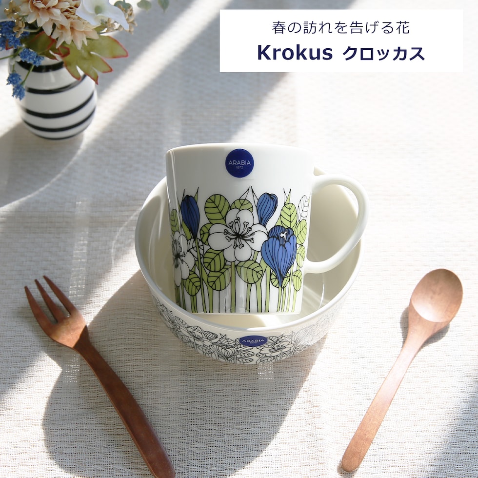 エステリ・トムラがデザインした、ヴィンテージ品としても人気の高い「クロッカス」シリーズの復刻版。春の訪れを知らせるように、クロッカスの花が生き生きと描かれています。