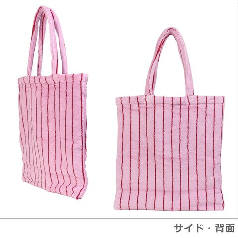 ・柔らかなコットン素材のタオル地トートバッグ ・ポップでカラフルな色使いと、豊富なバリエーション ・肩掛けしやすい長めの持ち手 ・A4サイズも余裕で入る大容量 |