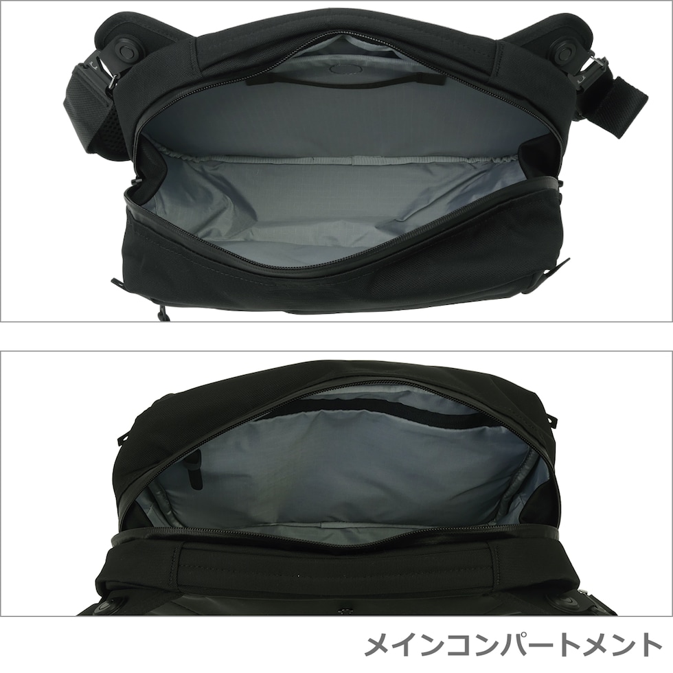 ・前面ポケット(ファスナー開閉/キーストラップ(取り外し可)×1、 デバイス用ポケット×1) ・メインコンパートメント(ダブルファスナー開閉 / ジップポケット×1、マグネット付きデバイス用ポケット×1) ・取り外し・長さ調節可能なショルダーストラップ(パッド付き) ・トップハンドル |