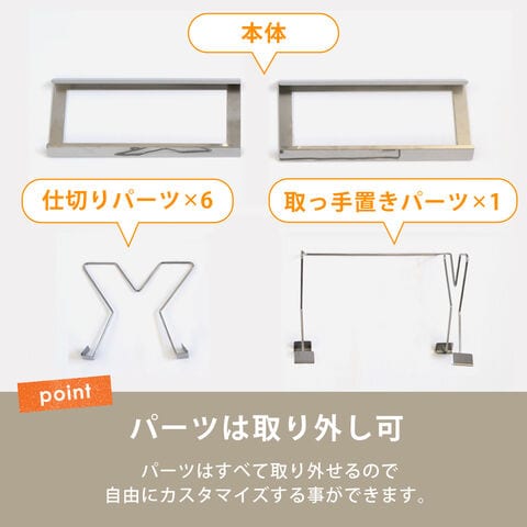 | スライドパーツ:ステンレススチール / 仕切りパーツ:スチール(クロムメッキ) |