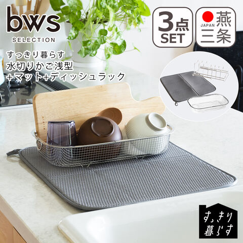 ビーワーススタイル すっきり暮らす 水切りかご 浅型 マット+ディッシュラックセット bws SELECTION MM-700131 KN-270027S ステンレス製 be worth style【北海道・沖縄は990円加算】bws310-c81