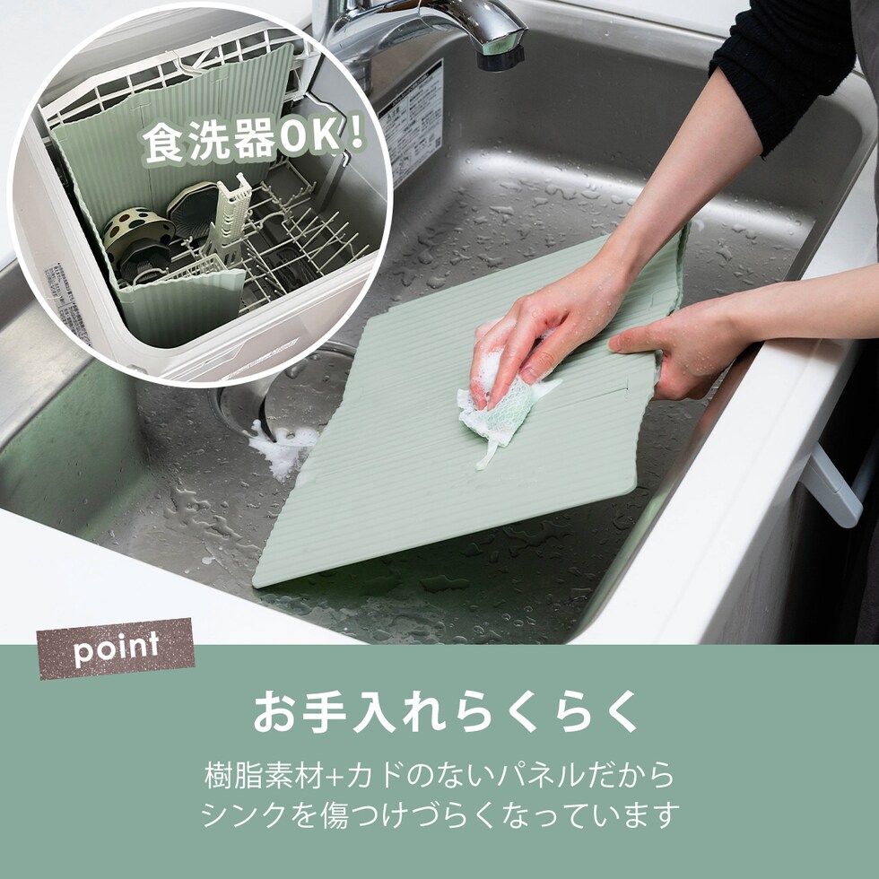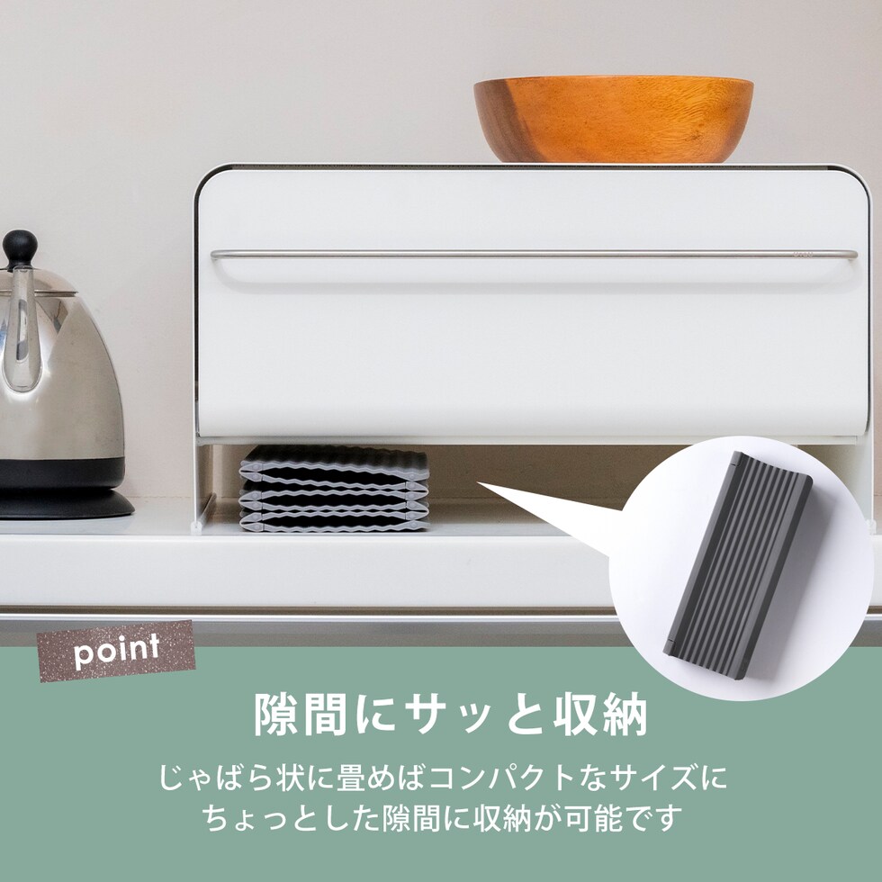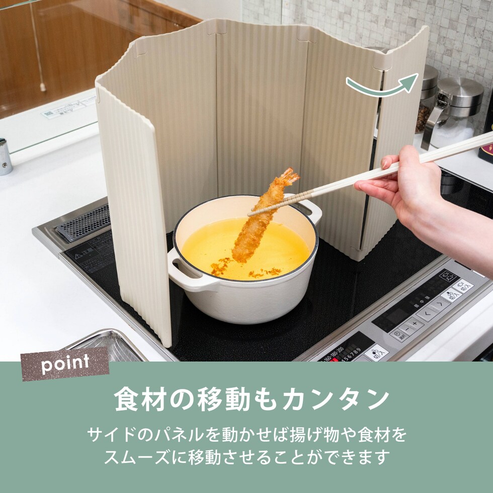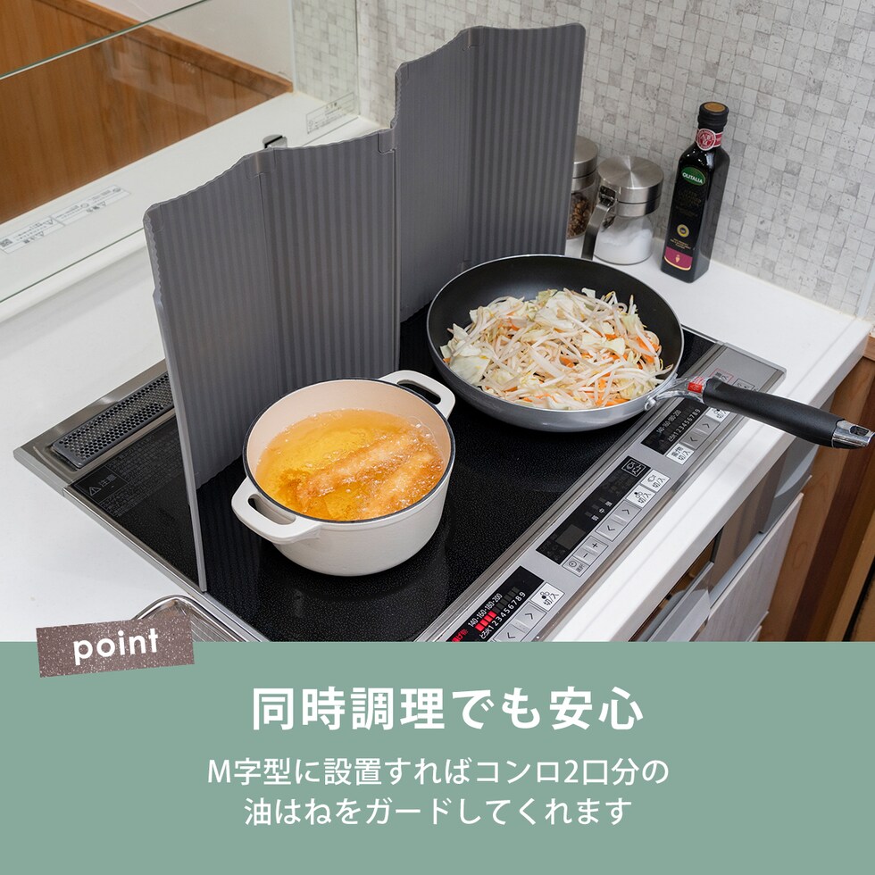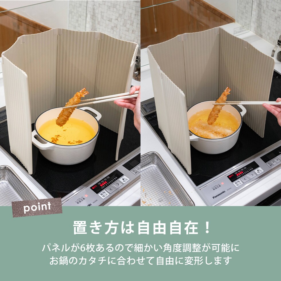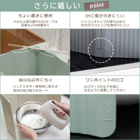・IHのガラストップやシンクを傷つけない樹脂素材の油はねガード ・イヤな金属音がないからストレスなく扱いやすい ・コンロ2口分のカバーも可能 ・コンパクトに折り畳めるため、収納に困らない ・選べる可愛いナチュラルカラー ・食洗機使用可能 |