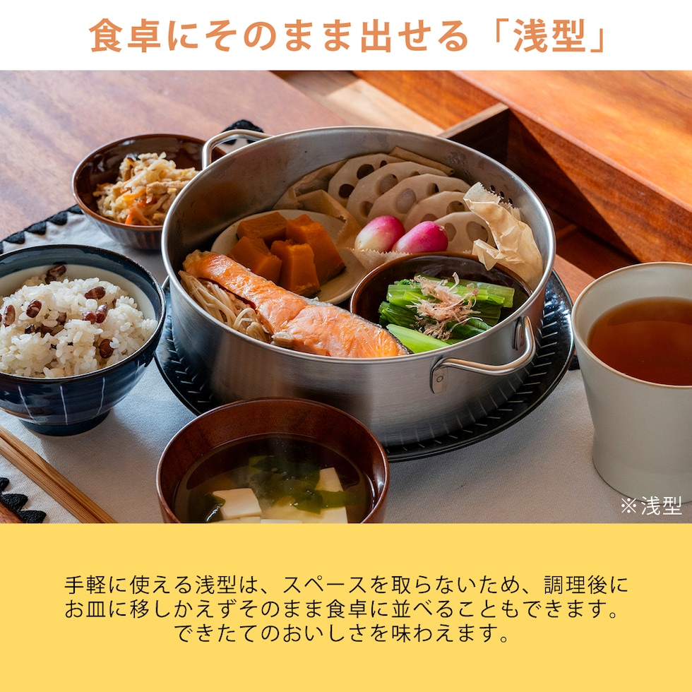 | すっきり暮らす ステンレスせいろ 浅型 / 仕切り板なし(OJ-195003S) |
