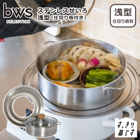 | すっきり暮らす ステンレスせいろ 浅型 / 仕切り板付き(OJ-195004S) |