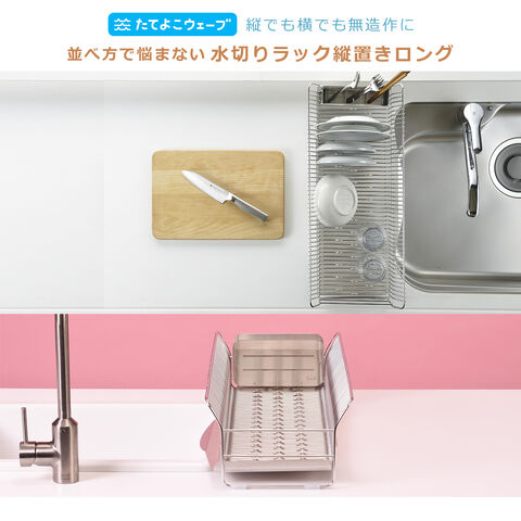 ・縦にも横にもお皿が立つ『たてよこウェーブ』搭載の水切りカゴ ・お皿をやさしく受けとめる、鳥が羽を広げているようなデザインのスワンウィング ・取り外し可能な箸立て付き ・水がきらきら流れる専用トレーで、排水の手間を省きお手入れも簡単 ・全ての端面のバリを無くし、やわらかい使い心地 ・すべりにくいゴム脚で水まわりでも安心 |