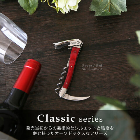 | Classic(クラシック モデル) シャトーラギオールの中でもオーソドックスなシリーズ。発売当初からの芸術的なシルエットと強度を併せ持った、入門用ソムリエナイフとしてお勧めのモデル。 |