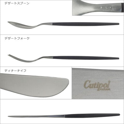 クチポール カトラリー MIO(ミオ) ブラック シルバー 5点セット MI.5 ディナーナイフ/ディナーフォーク/ディナースプーン/デザートフォーク/デザートスプーン 各1本 cutipol 【北海道・沖縄は990円加算】 cut30005