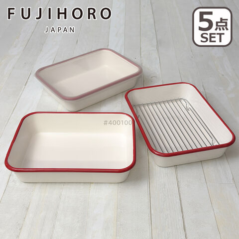 富士ホーロー 揚げ物バット 5点セット バット3点 すのこ網 フタ付き B-M-S (ビームス) ホーローバット BM-3V.NR ほうろう 【北海道・沖縄は990円加算】fuj066-151